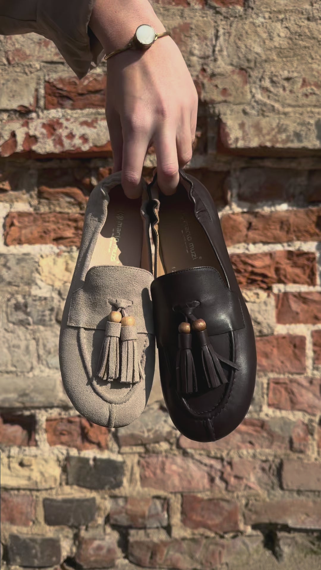 Minkšta, prigesinto pilkšvumo versta oda suteikia šiems mokasinams skulptūriškos, bet kartu ir pažeidžiamos ramybės pojūtį. Subtiliai sutrauktas kulnas ir šviesaus medžio detalė kuria organišką, kone taktilinę nuotaiką, tinkančią lėtiems pokalbiams senamiesčio terasoje. Tai tylaus minimalizmo gestas, skirtas tiems, kurie vertina daikto charakterį labiau nei jo keliamą triukšmą.