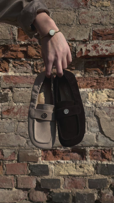 Gilaus umbros atspalvio versta oda šiems mokasinams suteikia minkštumo, kuris labiau primena jaukią popietę senamiesčio terasoje nei griežtą ofiso rutiną. Klasikinė loaferių konstrukcija čia dekonstruojama per minkštą kulno dalį ir subtiliai rauktas linijas, o aukso spalvos metalo akcentas suteikia reikiamos struktūros ir svorio. Juntama faktūrinė šiluma ir apgalvotas pado lankstumas sufleruoja apie judėjimo laisvę, kurią norisi derinti prie laisvų šviesių kelnių ar kašmyro megztinių. Tai daiktas, talpinantis savyje Vilniaus intelektualią ramybę – šiek tiek nostalgiškas, bet absoliučiai šiuolaikiškas savo pojūčiu.